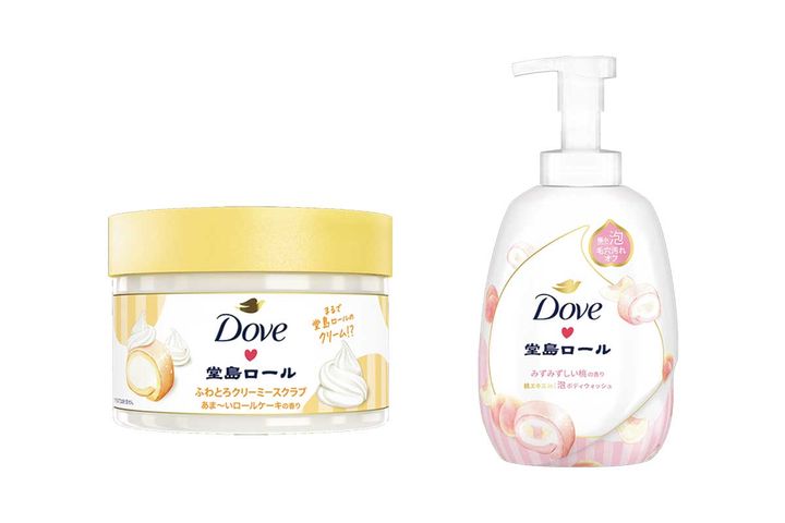 (左から)ダヴ ふわとろ クリーミースクラブ 堂島ロール 298g、 同 ビューティーモイスチャー 泡 ボディウォッシュ 季節の堂島ロール 桃 ポンプ 540g ともにオープン価格/ユニリーバ・ジャパン