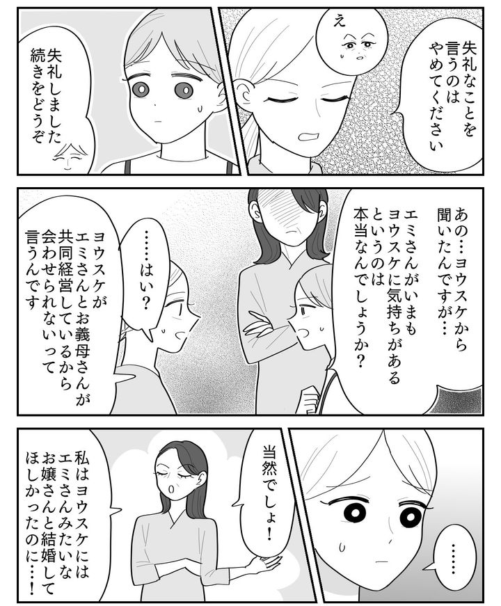 その理由がエミさんであること、お義母さんはエミさんと復縁させたがっているようだということも……。