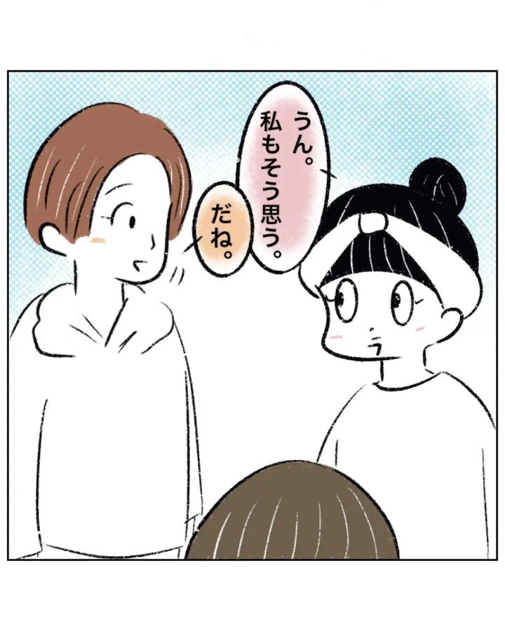 マキちゃんママのフォローで冷静になれたまるさんは「うん。私もそう思う」「だね」とマキちゃんママと顔を見合わせました。