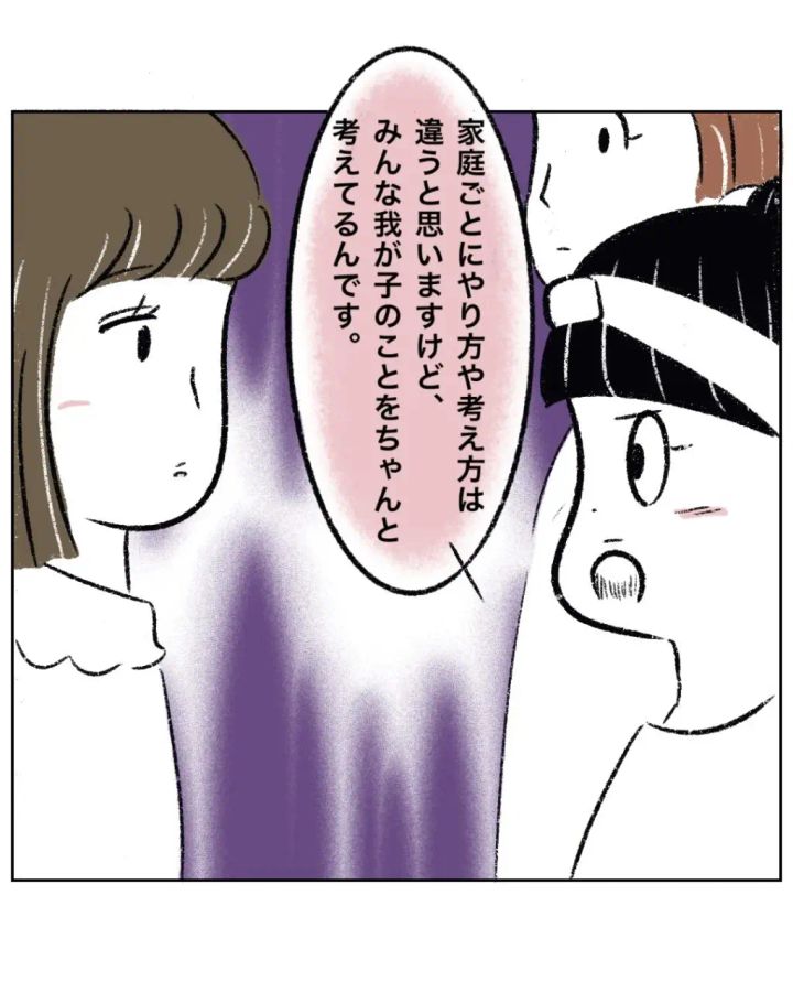 そして、幼児教室をごり押ししてくるゆかちゃんママに「家庭ごとにやり方や考え方は違うと思いますけど、みんな我が子のことをちゃんと考えてるんです」と真っすぐ目を見て言い、
