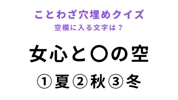 「女心と〇の空」の空欄に文字を入れると、あることわざが完成します。