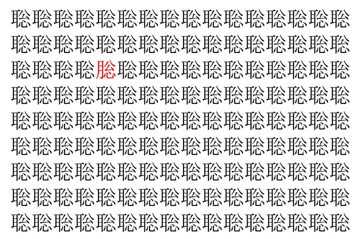 画像の中には、「聡」という漢字が縦に9行、横に16個並んでいます。 全部で144個となりますが・・・、そのうち1つは「異なる漢字」となってますよ!!