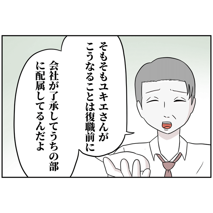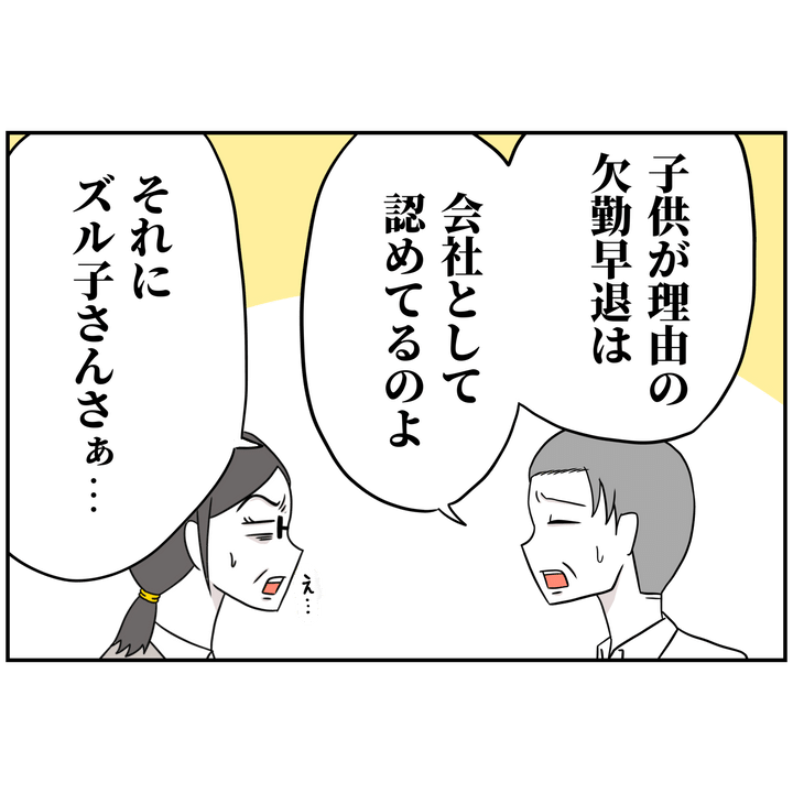 ユキエさんに文句を言ってきたのは、上司ではないにも関わらず、前から何かと上から目線で話してくるズル子さん。ユキエさんが復職してからは、以前に比べて明らかにアタリがキツくなっていました。