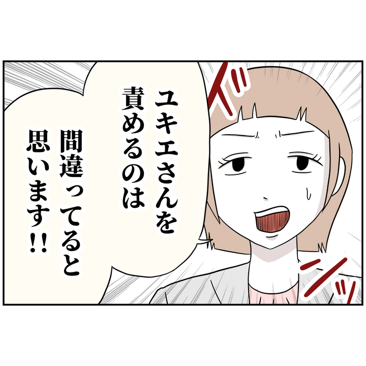ユキエさんは謝りつつも、「子どものことなので仕方なくて…」と説明しますが、納得してない様子。
