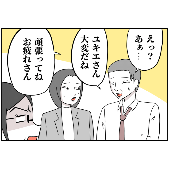 早退されることで他の人の仕事が増えるのだと、文句を言われてしまったユキエさん。その人の言動には、ほかの社員も若干ざわつきました。