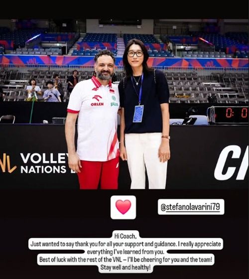 キム・ヨンギョンは「コーチ、これまで見せてくださったすべての支援と指導に心から感謝しています。コーチから学んだすべてのことに本当に感謝しています。残りのVNLも幸運に恵まれることを願い、監督とチームを応援しています。いつも健康で幸せでいてください」と伝えた。