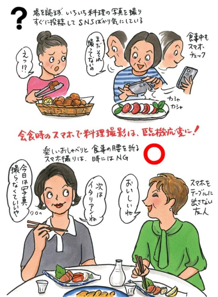 思うに、私は心のどこかで、場を読まずに運ばれてきた料理の写真をいちいち撮って、熱いものを熱いうちに食べようとしていた他の人を遮ったり、みんなでおしゃべりしている最中もスマホのチェックをして気もそぞろな人を、ちょっとやだなぁと感じていたのだと思う。