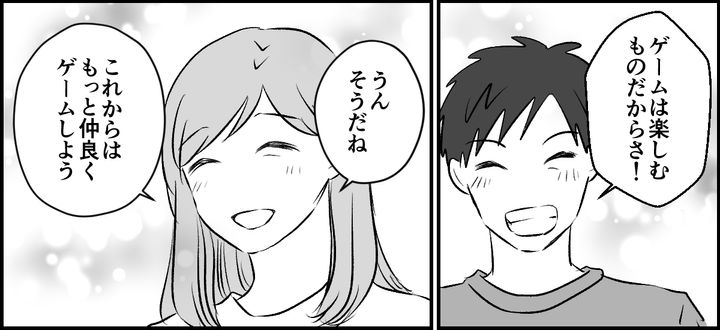 せっかくだからと2人でゲームを再開。いつものようにゲーム音が響くリビング。でも今回は、笑顔で仲良く。