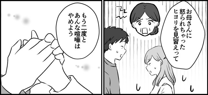 家に着くと、ススムは気まずそうに私を迎え入れ、私たちはお互い謝り合いました。母の言う通り、ヒヨリを見習わないといけませんね。