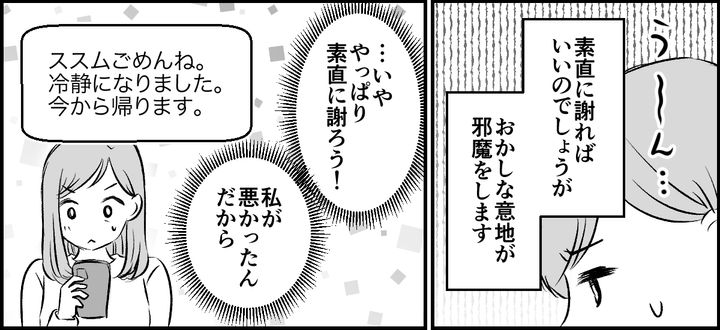 意地を張らず、ススムに素直に謝ることにしました。「今から帰る」とLINEを送ると、すぐに既読になりました。きっと待っていてくれたのでしょう。
