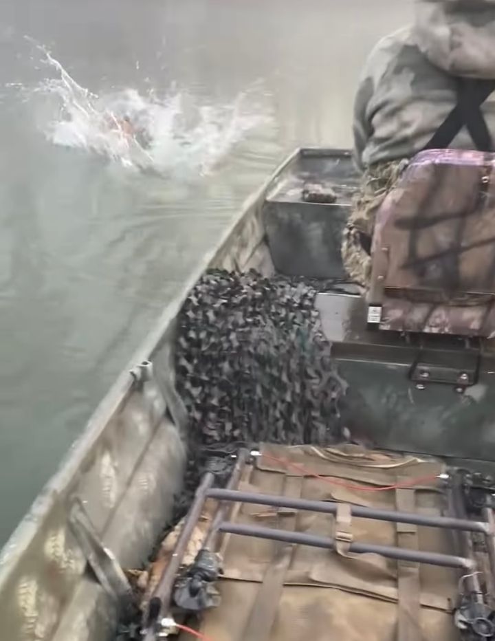 水の中に勢いよく飛び込んだ犬。 泳いで戻ってくるその顔をよく見ると・・・、『ある動物』がくっついていました!!