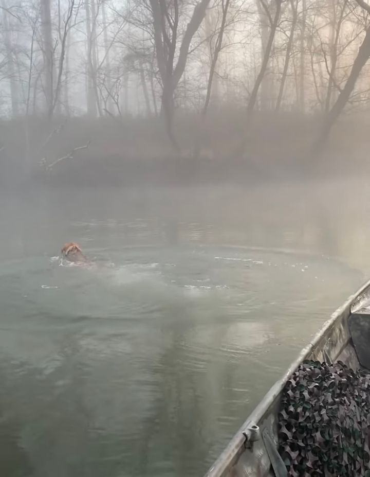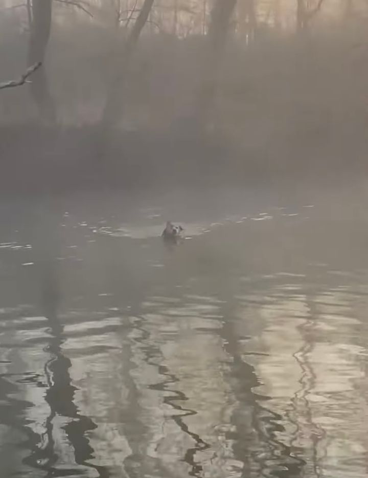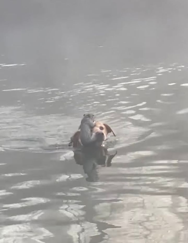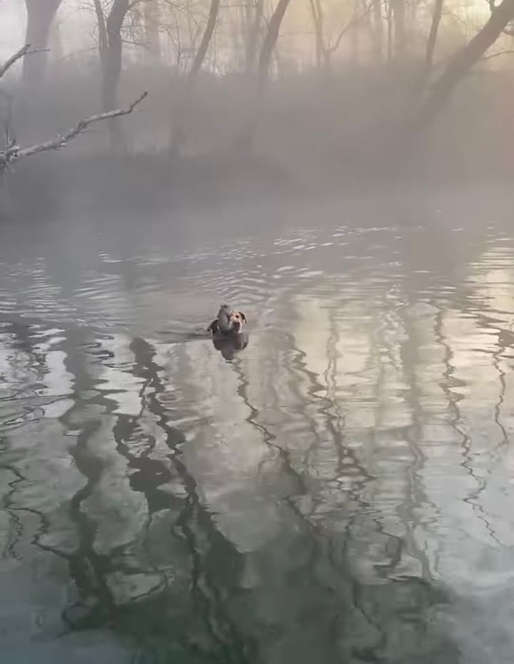 3. 【リスを救助した犬】泳いで戻ってくるその顔をよく見てみると・・・、『ある動物』がくっついていました!!【アメリカ・動画】