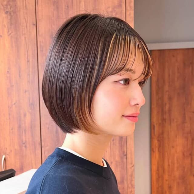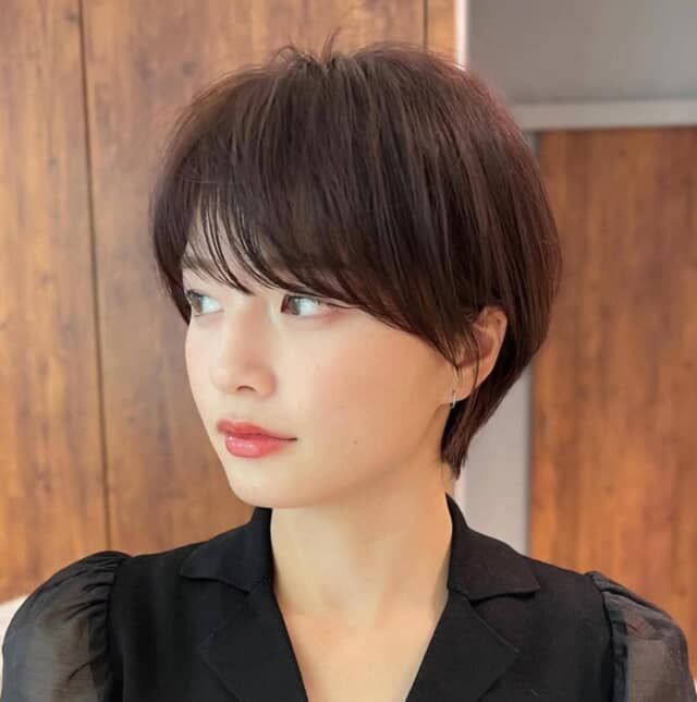 ショートヘアは顔まわりが強調される分、“透け感”と“ツヤ”を意識するのが成功のカギ。特に、前髪にスキマを作るシースルーバングは、額の肌見せで抜け感を生み、小顔効果を引き立てます。