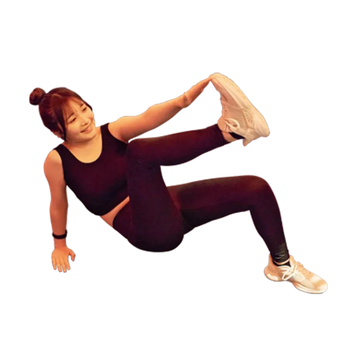 続いては、3種類の腹筋に挑戦。疲れが見えてきた4番目なのに、初めて教わる高難度な腹筋だらけで大混乱。しかし、TOMOMIコーチのパワー全開な指導のおかげで、やる気がUP!