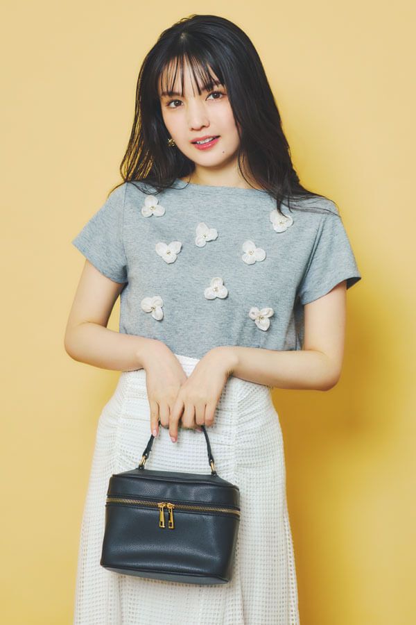 骨格ウェーブさんにおすすめ!上半身を盛れる立体的なフラワーモチーフ付きTシャツ