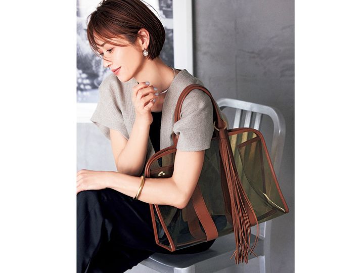 『絶妙な透け具合が大人の夏気分を盛り上げるのに◎。バッグの中身にもこだわりたい!』(ライター 小花有紀)
