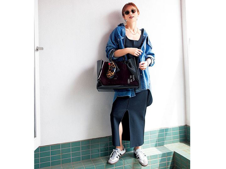 バッグ¥16,500メガネケース¥19,800[ともにハァウ]バラのチャーム¥14,300[プラ ウズ]デニムシャツ¥39,600[ウィム ガゼット](すべてウィム ガゼット 玉川髙島屋S・C店)ワンピース¥29,500(ザ シンゾーン/シンゾーン ルミネ有楽町店)スニーカー¥15,950(アディダス/アディダスお客様窓口)ネックレス¥22,000(クイップクエイント/フーブス)バングル¥74,800(ノアーク/エスケーパーズオンライン)リング¥115,500(ボロロ)サングラス¥69,300(アイヴァン 7285/アイヴァン 7285 トウキョウ)