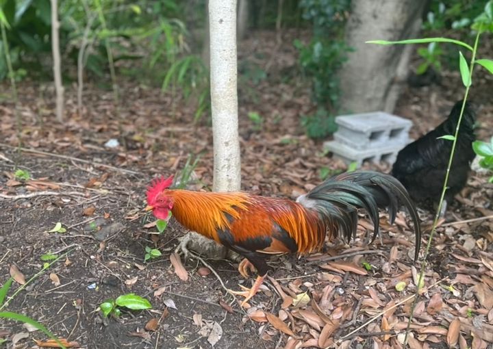 帰り道でも神鶏に遭遇。この画像には映っていませんが、クールなブラックもいました!