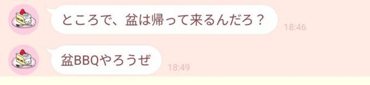 「盆BBQやろうぜ」という誘う流れもメッセージも、完璧な地元の友達で思わず笑ってしまいました。BBQというチョイスにも、友人からのお誘いの感じが溢れていますね。