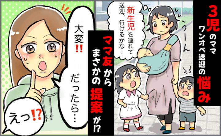 3人目となる娘を出産後、ワンオペで赤ちゃんのことだけでもバタバタなのに、上の子を幼稚園へ送迎しなきゃ……とひとり頭を悩ませていた私。そんなときに助けてくれたのは、同じ幼稚園のママ友でした。