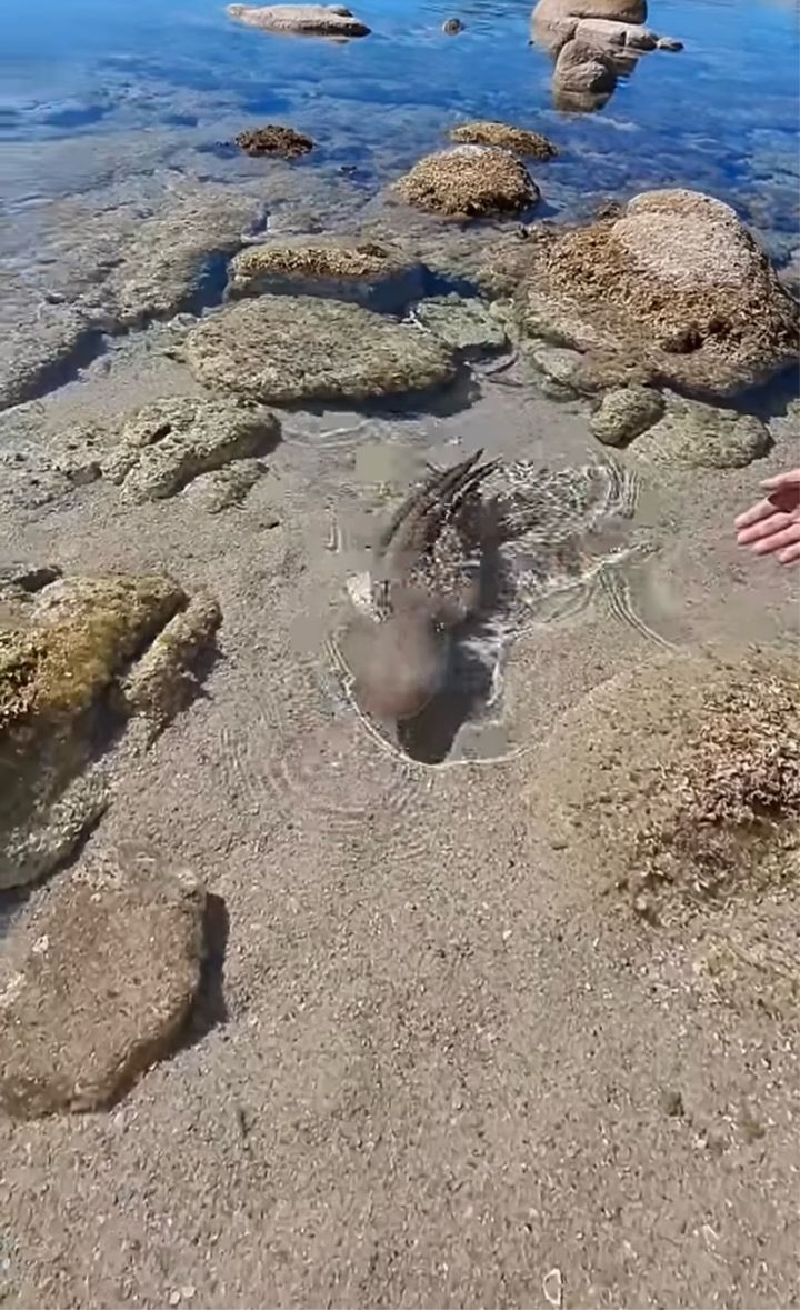 海水浴中に浅瀬で出会ったタコ。 ペットのような愛らしい姿は、こちらの動画からご覧いただけます。