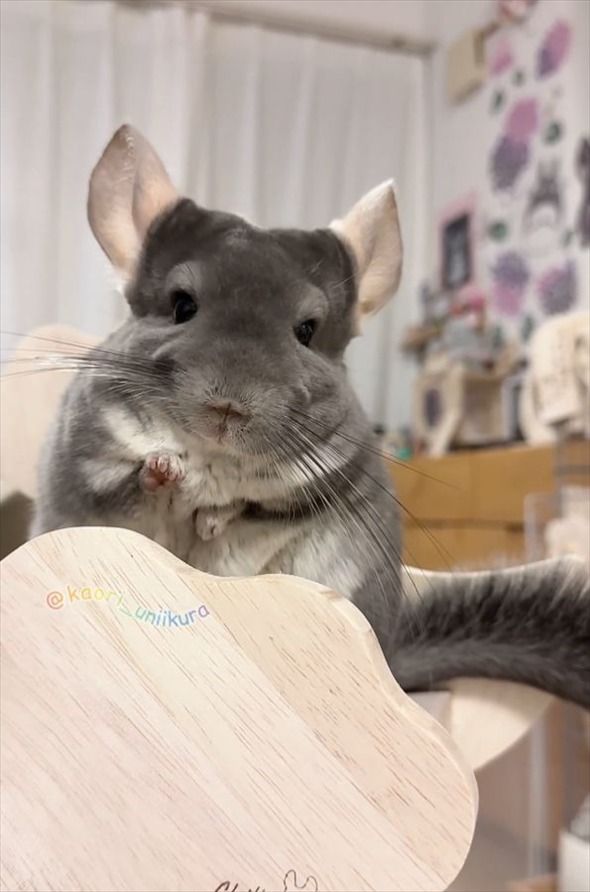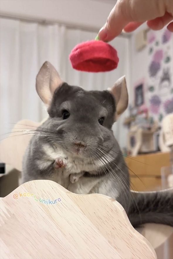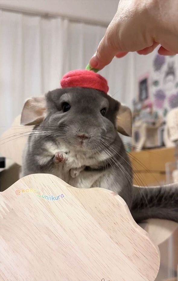 愛らしい見た目と動作で人気のチンチラ。 帽子をかぶらせてもらっと際の耳の動きが反響を呼んでいます!