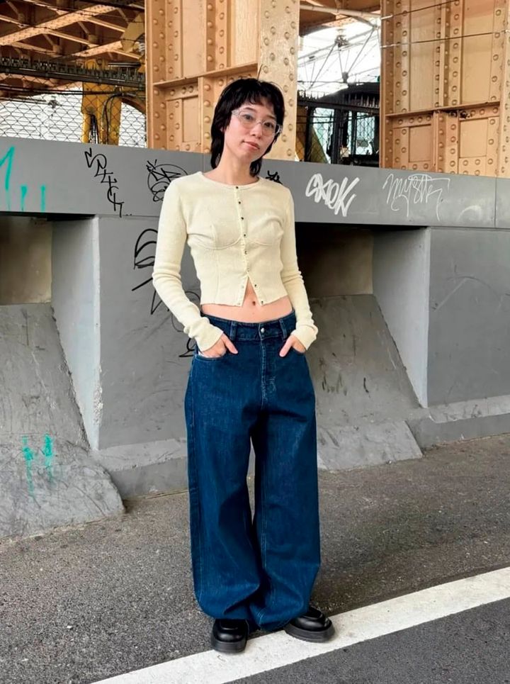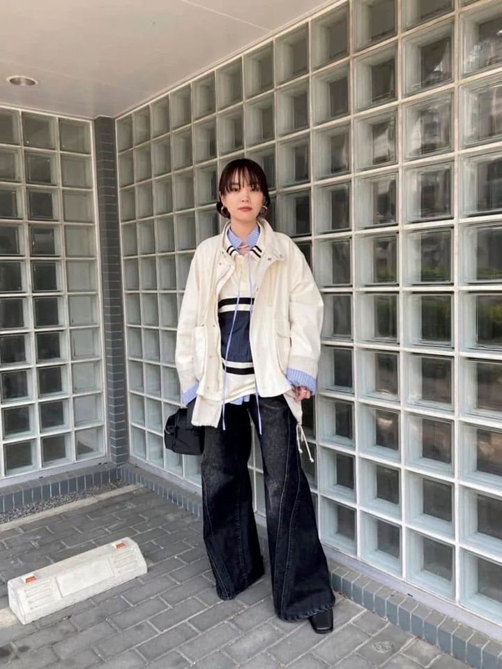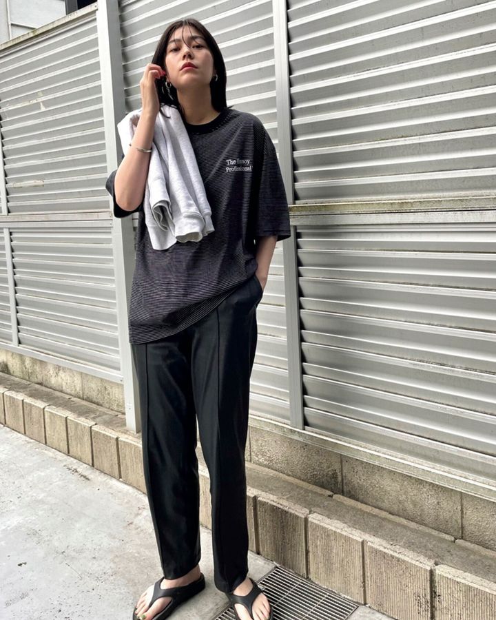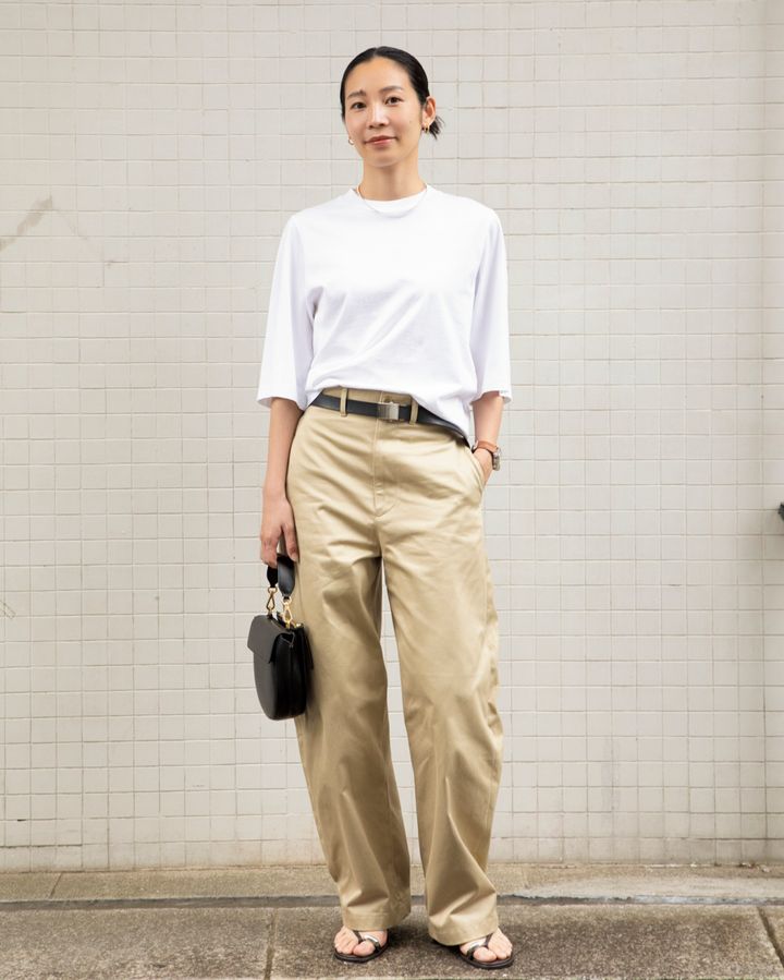 K バランスの話で言えば、池田さん❶は旬のバレルパンツに対してトップスのサイジングや裾の崩し方、ベルト使いが上手い。小畑さん❷のメンズっぽいオーバーサイズ感や楠原さん❸のパンツのシルエット選びとか、サラッと見えて実はちゃんと計算されてるのが分かる。