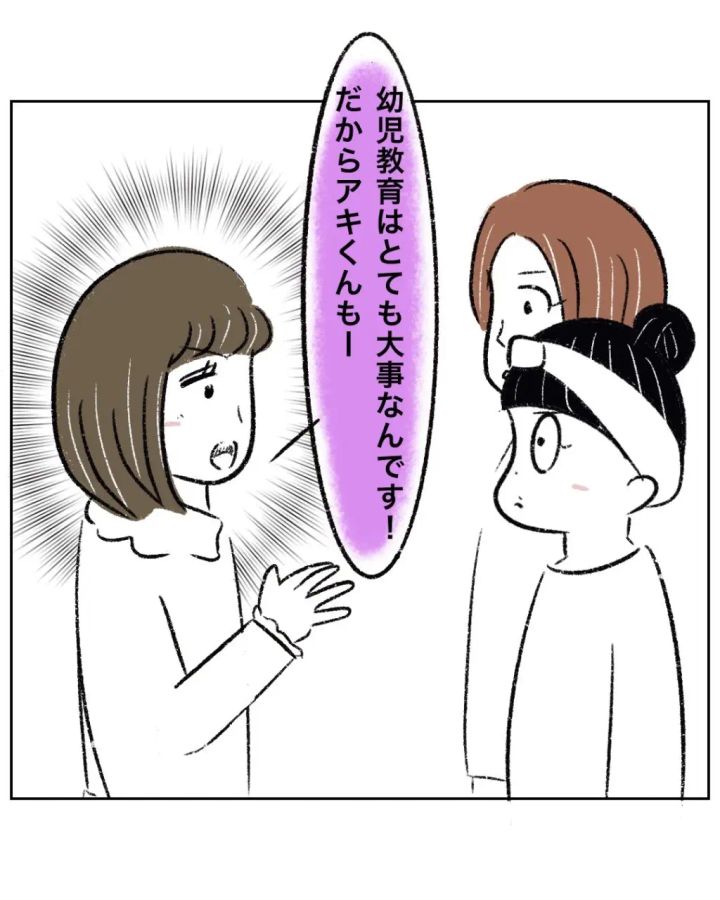 そして、「幼児教育はとても大事なんです!だからアキくんも」と再び強く幼児教室を薦めてきました。