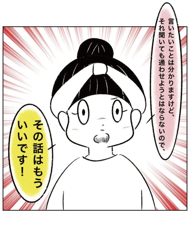 幼児教室をごり押しするゆかちゃんママにうんざりしていたまるさんは、「言いたいことは分かりますけど、それ聞いても通わせようとはならないので、その話はもういいです!」ときっぱり断りました。