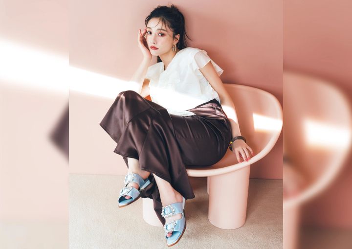 撮影/田形千紘[人物]、林真奈[静物] スタイリング/小原優子 ヘアメイク/あきやまひとみ モデル/谷まりあ 取材・文/叶野愛 ※[]内のHはヒール、ソールの高さで、単位はcmです(編集部調べ)。 ※andGIRL2025年夏号より
