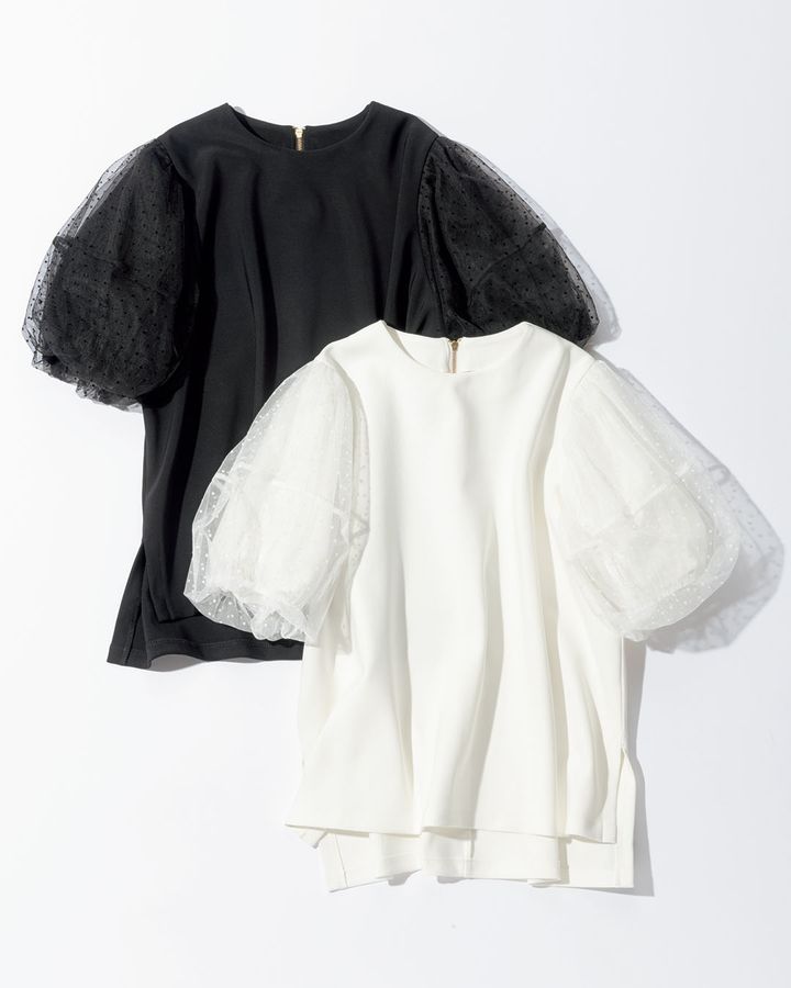 THREE SQUAREドットチュールスリーブプルオーバー¥9,900