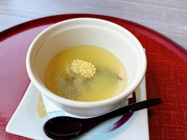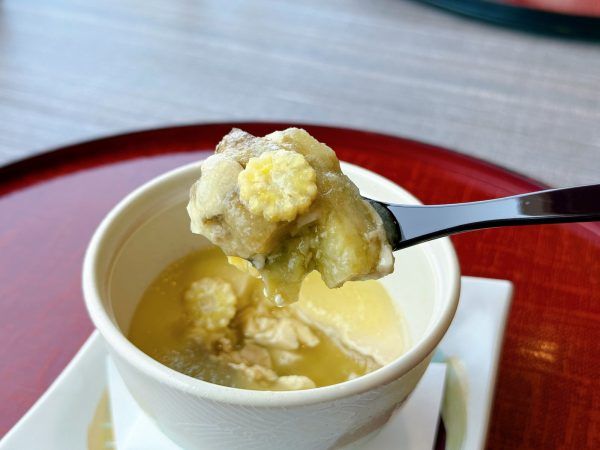 その上から、とろりとかけられた冬瓜のあんが全体を包み込み、口当たりもなめらかで涼やか。蒸し暑い夏の日にもするっと食べられる、身体がほっとするようなひと品でした。