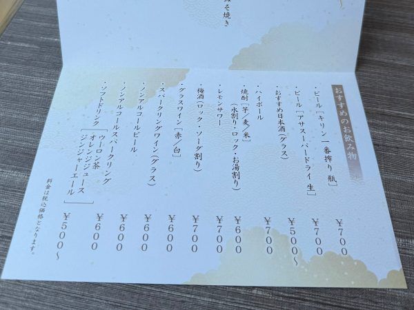 ソフトドリンク・アルコールともに充実しているので、料理とのペアリングを楽しむのも良さそうですね。ランチタイムは、一部のドリンクを除き500円(税込)での提供です。