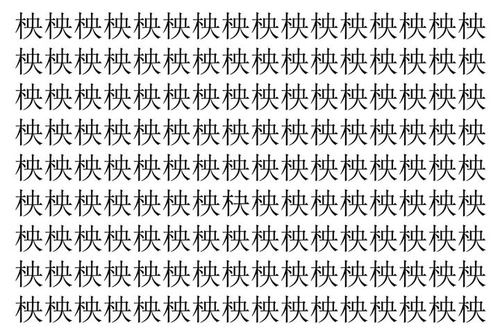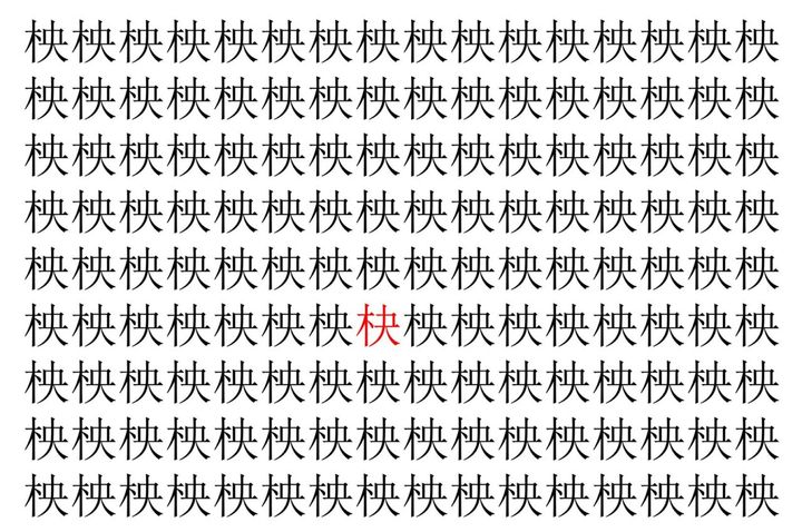 画像の中には、「柍」という漢字が縦に9行、横に16個並んでいます。 全部で144個となりますが・・・、そのうち1つは「異なる漢字」となってますよ!!