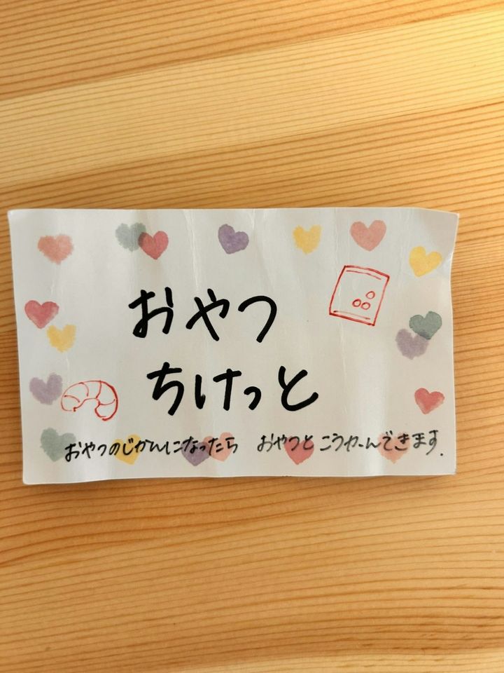 時間外に要求された際に渡している“おやつちけっと”は、おやつの時間での交換だそう。「実物に対してその所有権を与えてあげると、仮に実物を使えなくても満足することがある」といった発想をもとに、始めたと話すつづきさん。かわいいデザインのチケットで、より喜んでもらえますね。