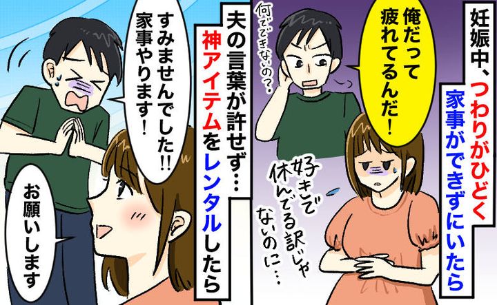 「俺だって疲れてる!」つわりで動けない私に不満爆発の夫。“お助けアイテム”を借りたことで態度が一変