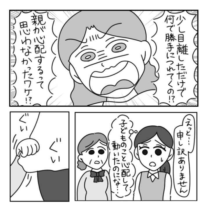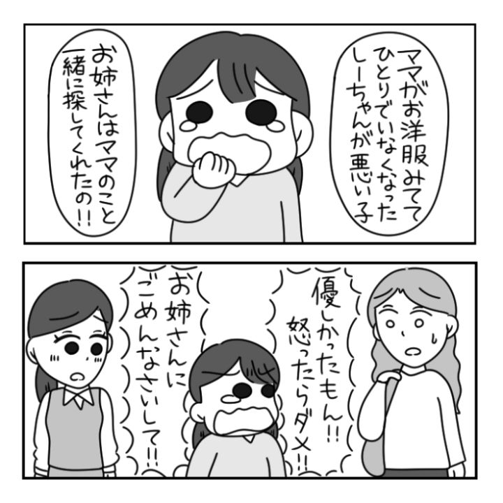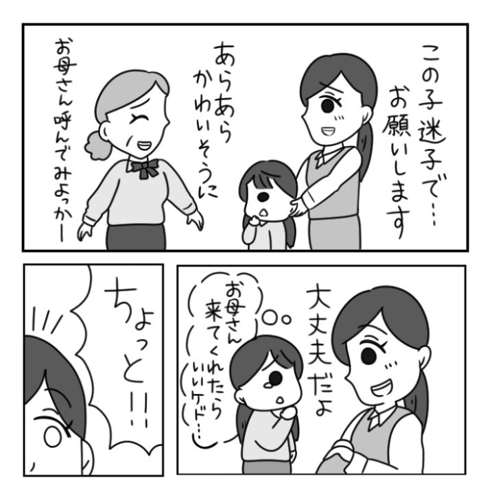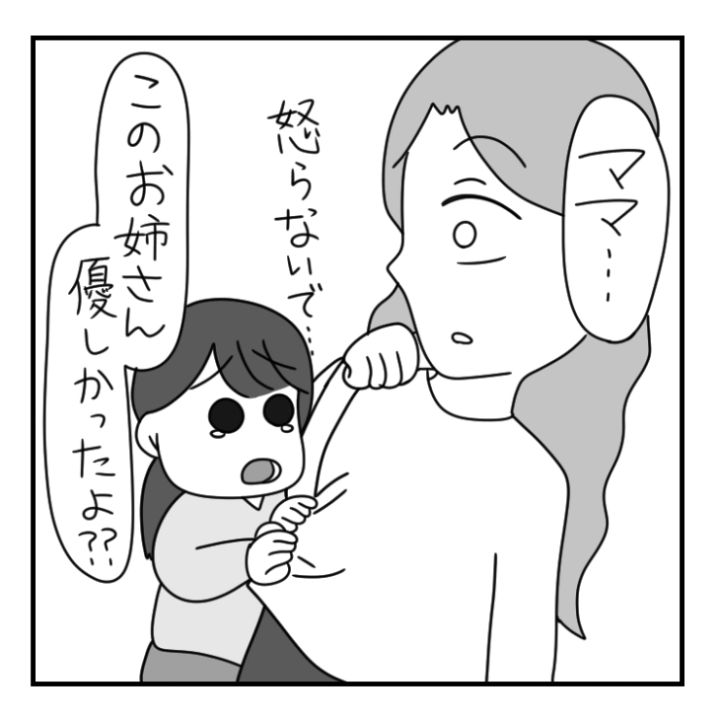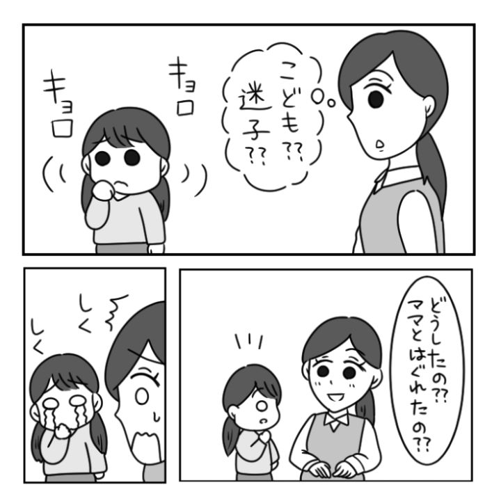 よかれと思って迷子センターに連れてきたのに、ブチギレられ、理不尽さを感じていたものの、優しい心を持った女の子に救われた主人公でした。