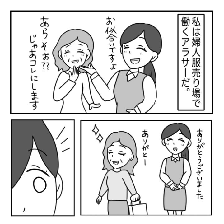 主人公はデパートの婦人服売り場で働くアラサー女子。ある日、いつものように働いていると迷子らしき女の子を発見したのでサービスセンターに連れて行くことにしました。