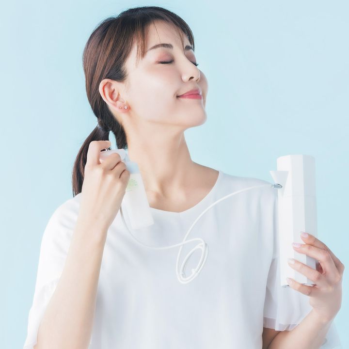 洗顔後に首や顔にシューッとするだけで、血色感がアップするMEGRYの炭酸スプレー。半年前から使っていたところクマができなくなり、コンシーラーの必要がなくなりました。