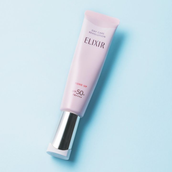 自然なピンクトーンの肌になるエリクシールのUV下地。乳液効果もあって機能的だから、これだけでベース終了。子ども達の用意に時間がかかるので、自分は時短で済むように。