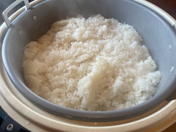 開店直後にご飯類をチェック。 白米の準備OK。良い感じで炊きあがっています。
