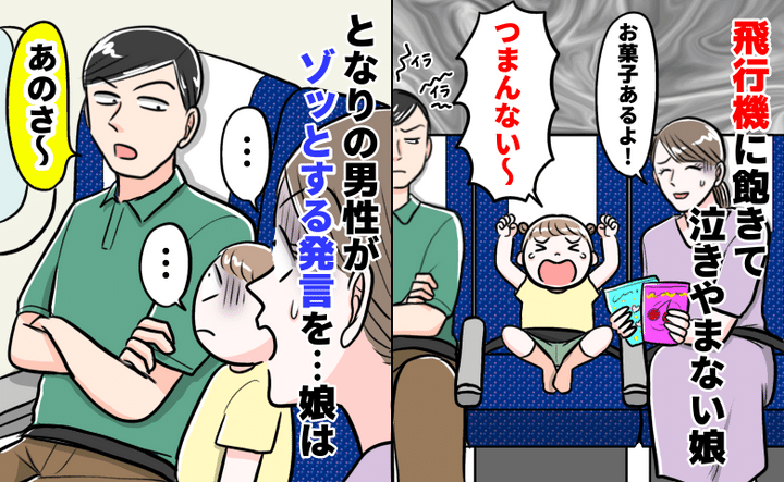 機内で娘が大号泣!イライラMAXの隣席男性が放った"衝撃ワード”に親子でゾッ…着陸まで20分、娘は?