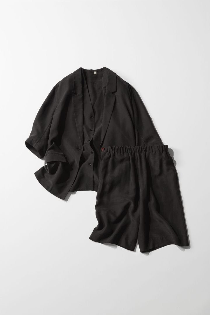 着回しが無限に思いつく、便利過ぎるセットアップは、マットなシルクな光沢感が涼しげな「GENTLE SILK」シリーズのセットアップ。皺になりにくいし、軽やかで何とお家で手洗いOKという優秀さ。ハーフパンツはタンクトップ合わせ、シャツをバサッと、スウェット代わりに。などつい手が伸びそうです。