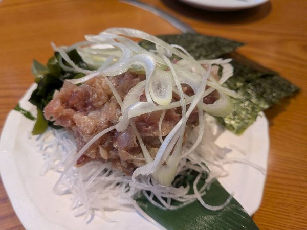 【三品目:鯵のなめろう】新鮮さがダイレクトに伝わる逸品!海苔でまいて醤油で食べるとウマ~!!