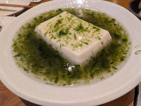 【一品目:あおさ豆腐】つるんとしたのどごしにあおさのいい香り~。いきなりおいしい!