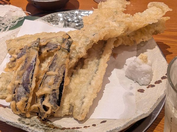 夏野菜の王様おなすの天ぷらもおいしい。ああ、幸せなり。