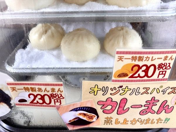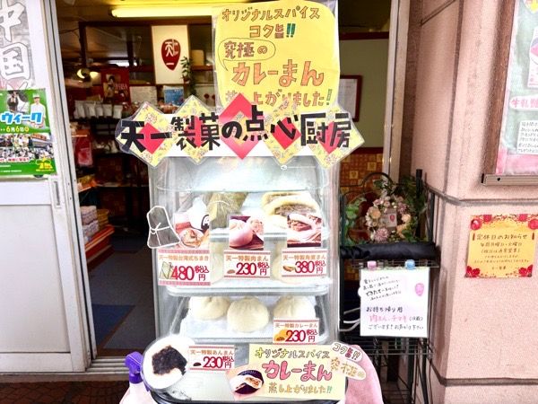 店頭には点心の販売もあり、王道のあんまん、肉まんから角煮まん、台湾式のちまきなど種類も豊富です。オリジナルスパイスが効いた天一特製究極の「カレーまん」も人気です。買ってすぐ食べられるように店先に長椅子が置いてありましたよ。 冷凍の大根餅、海鮮焼売、スープ小籠包、花絞り餃子はおかずの一品にオススメですね。