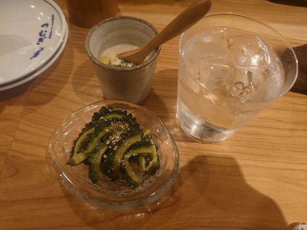 まずは前菜として、ゴーヤの甘酢漬けを注文。しっかりと苦いですがそこがいい。焼酎の水割りで流し込むと、口の中がさっぱりとリセットされる感じがして堪りません。私のように前菜にするのも良し、脂っこい又は濃い味の料理の後の箸休めにもピッタリです。