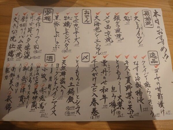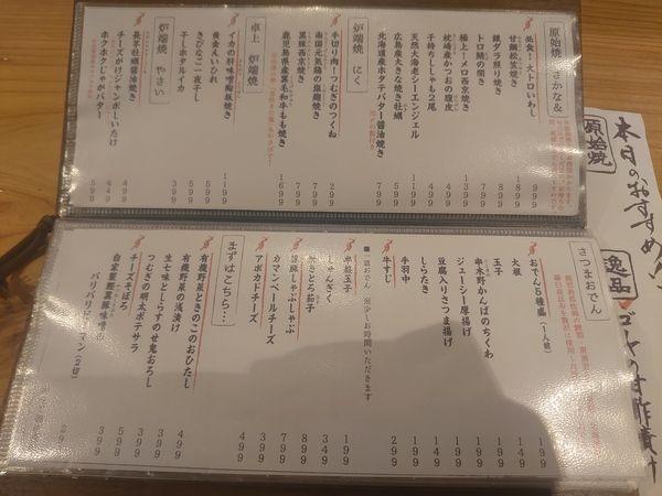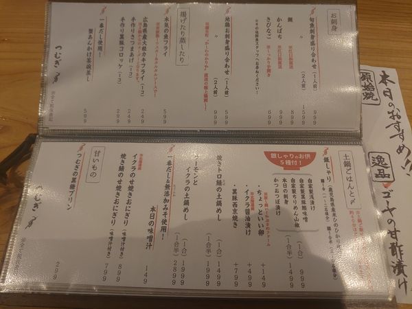 お値段はリーズナブルで、全てのメニュー価格に端数効果(100円より99円の方がお得感が出る)がかかっていて地味に面白い。炉端焼、おでん、お刺身、土鍋ご飯など、一般家庭では中々食べる機会がない魅力的な和食メニューが豊富!!