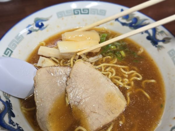 あっさりとした脂身の少ないチャーシューがラーメンを引き立てる。